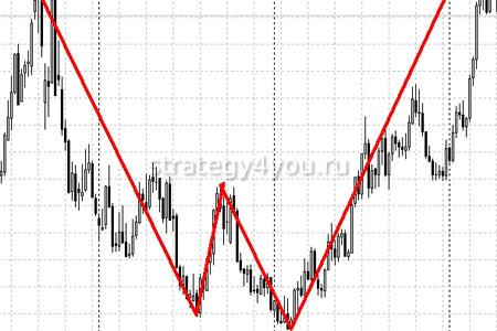 В этот момент сложно делать прогнозы и говорить о развороте, так как на трендовых рынках часто случается коррекция. Если откат после достижения второго пика совершается в том же отрезке, что и на первой вершине, то рынок может упасть еще ниже.