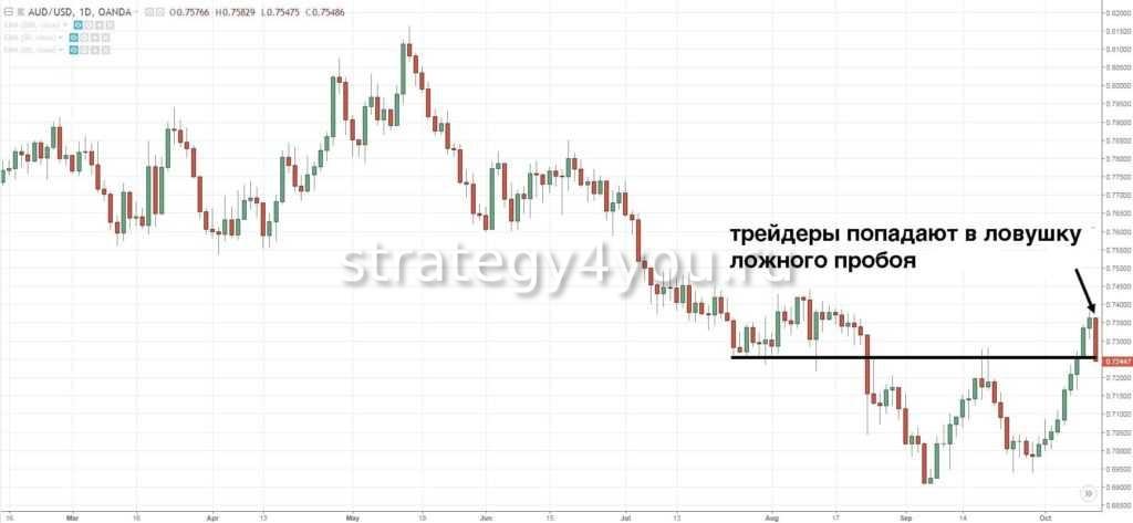 - В случае ложного пробоя повышается шанс ускоренного движения после коррекции. Отодвигание стопов, в этом случае, только увеличит убытки игрока.