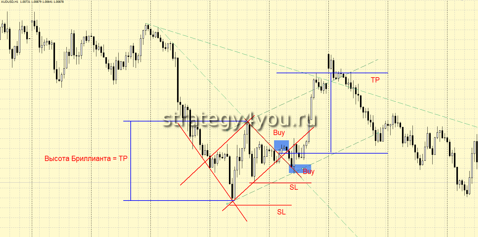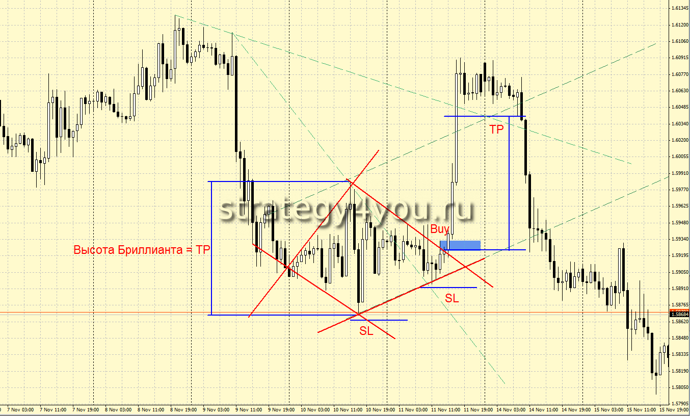 Торговать внутри паттерна «Бриллиант» не желательно и не рекомендовано!