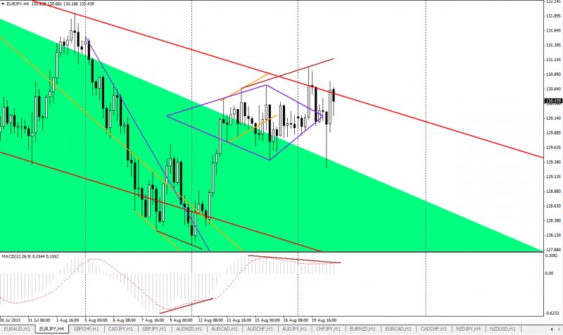На Н1 можно ли рассматривать как обычный сужающийся треугольник? С неплохим условием входа выше закрытия линии. Отработка в 55% от цели вполне обусловлена важным уровнем сопротивления.