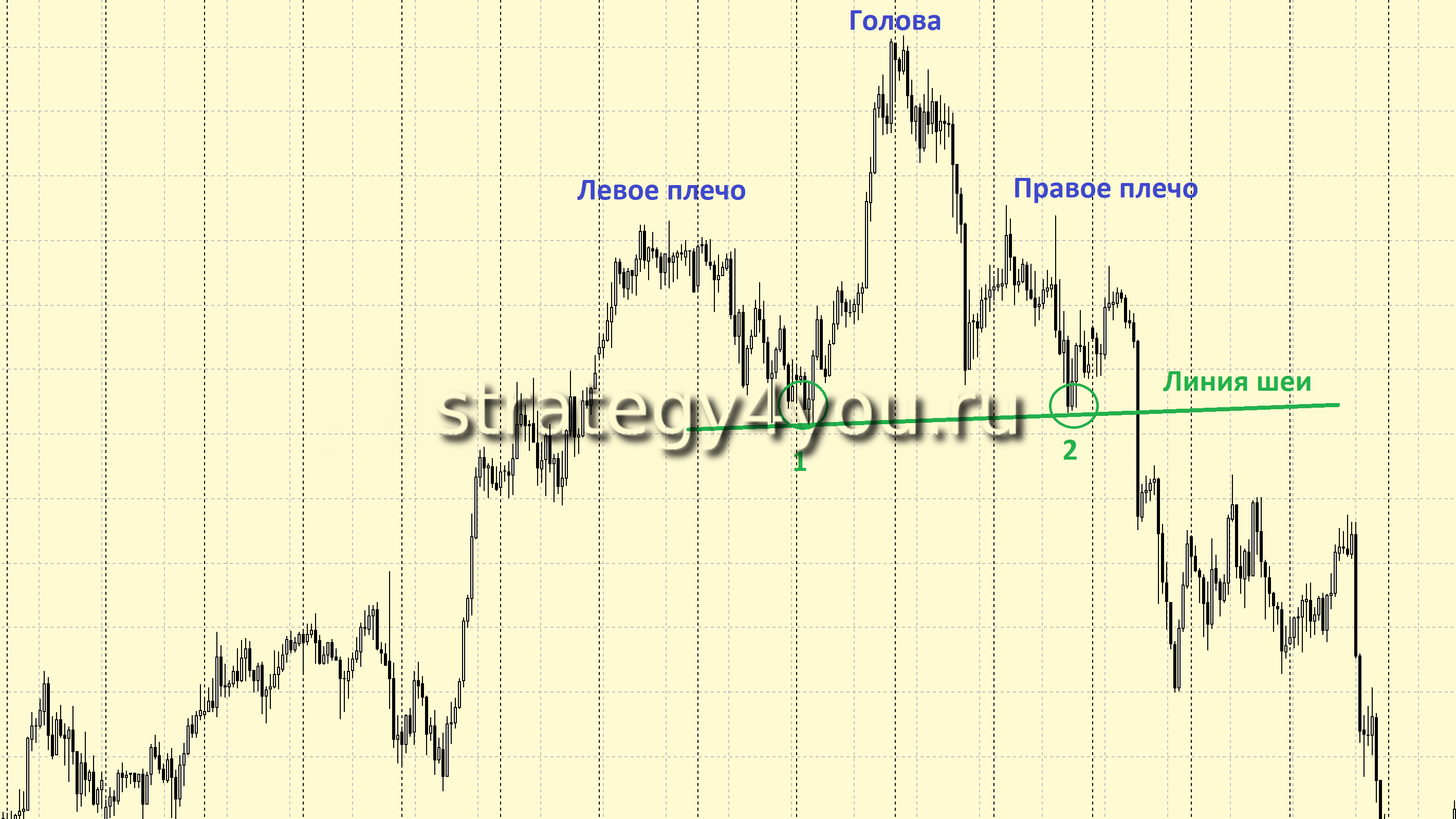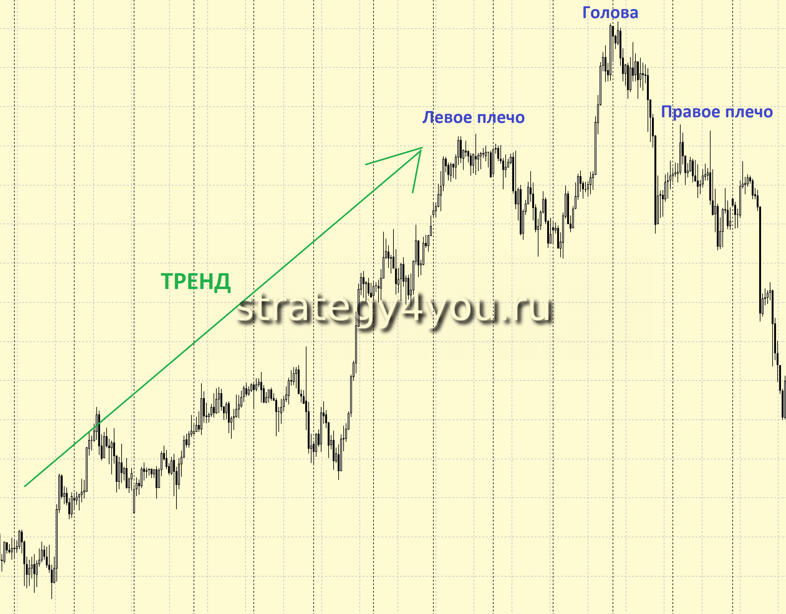 Модель (на англ. Head and Shoulders) состоит из 3 пиков, где: