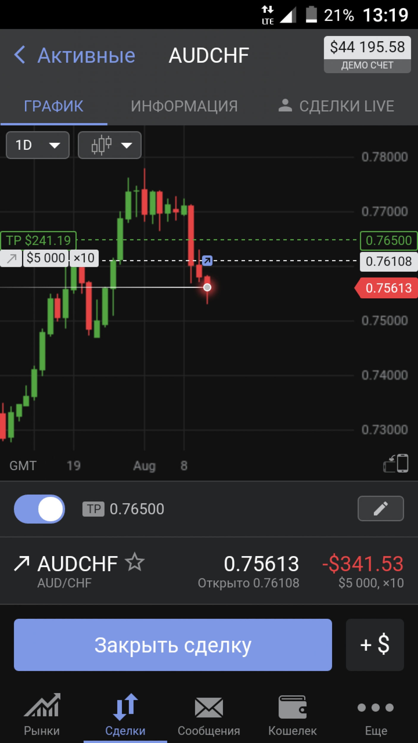 Всем привет и удачных сделок.В прошлый раз писал о формирующемся паттерне Голова и плечи на дневном графикеAUD/CHF.В сделку вошел рано.Долго ждал развязки.Цена ушла во флет и порой грозила переписать линию головы.Убыток доходил до 3500S.Но я твёрдо решил дождаться окончания событий.И вот кажется свершилось.Алексей,про комментируя те пожалуйста.