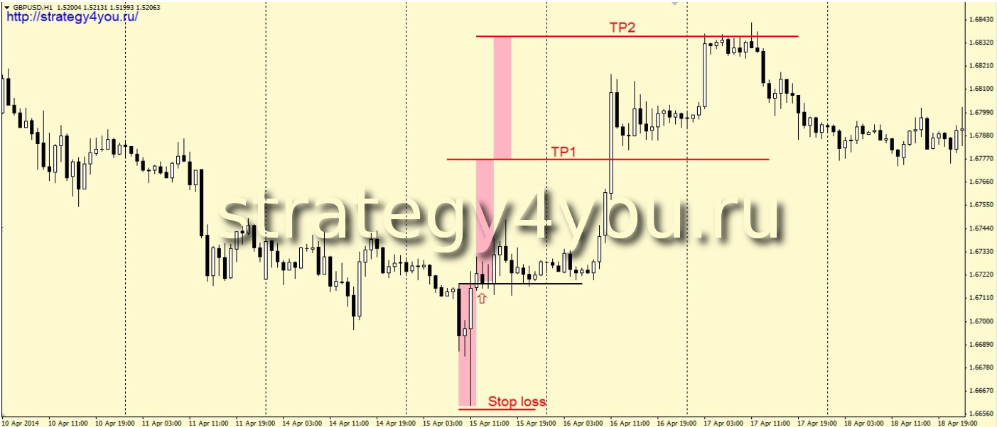 Если цена не протестировала уровень, то есть не удалось войти в рынок, то больше никаких действий лучше не предпринимать, по крайней мере, по данной стратегии форекс.