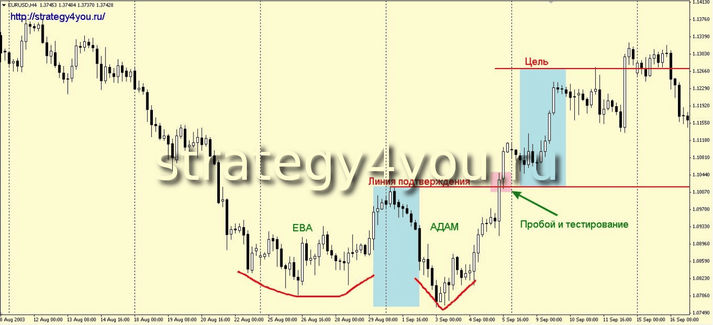 Опираясь на вариацию «Ева и Адам» не торопитесь заключать сделку. Дождитесь подтверждения, так как есть опасность спутать данную модель с коррекционной комбинацией АВС.