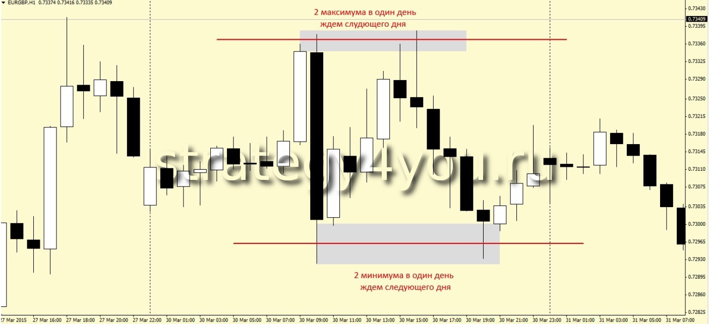Стратегия форекс «Два максимума/минимума в один день» основана на использовании горизонтальных уровней, которые описываются практически в каждом учебном пособии для начинающих, однако, на практике очень часто возникают сложности при определении важности того или иного уровня, а соответственно и в торговле по этим уровням.