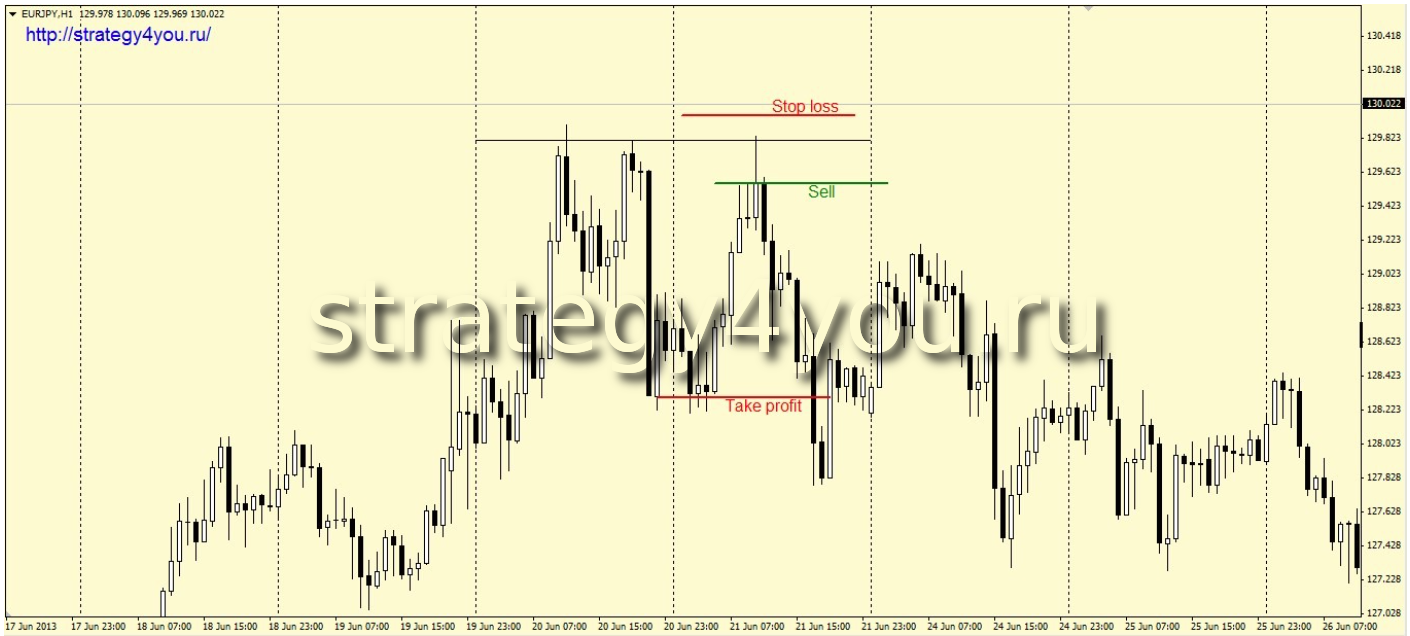 Нам нужно обнаружить день в течении которого было образованно два максимума или минимума на одном и том же уровне, именно в течении одного торгового дня. Экстремумы должны быть явно выраженными и отдельными друг от друга. В середине расстояние от ближайшего тела до максимума/минимума самого дальнего хвост проводим горизонтальную линию, это и есть наш уровень.