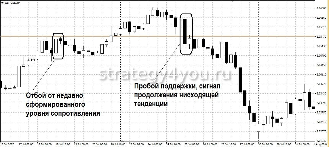 - Модель, сформированная на уровне поддержки или сопротивления.