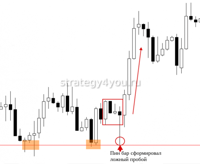 - Следующая свеча после фигуры пытается пробить уровень, однако вмешательство влиятельных игроков противоположной стороны не позволят сделать это. В результате цена только протестировала уровень.