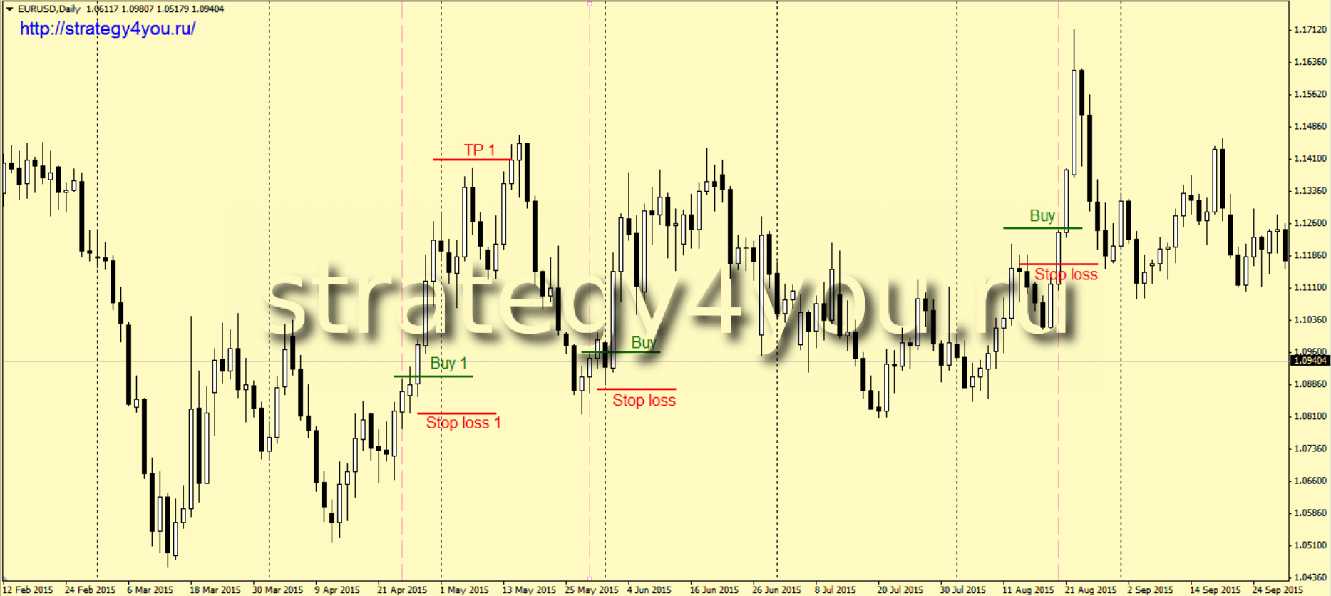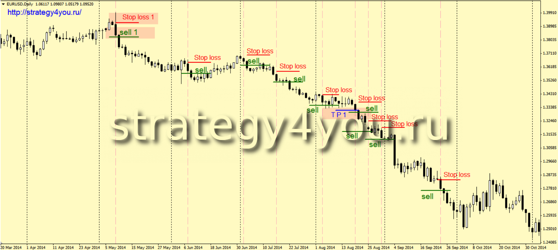 На дневном таймфрейме стопы получаются значительными. Для использования данной стратегии нужен депозит не менее 10000 $.