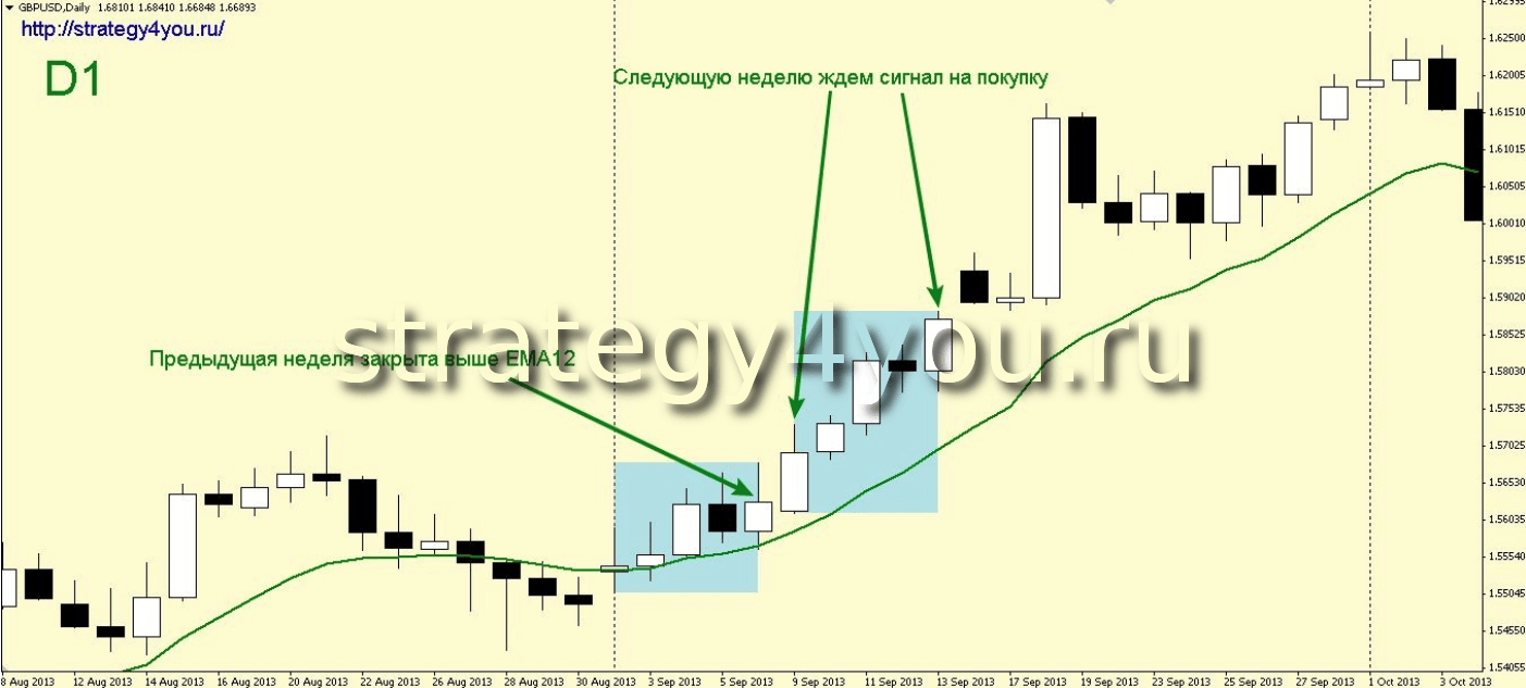 Условия для покупок по стратегии форекс «Недельный тренд»: