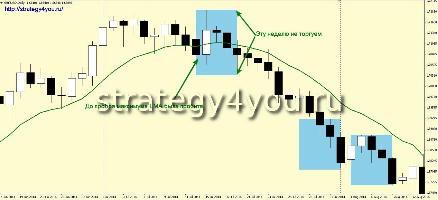 5. Благодарю! Сначала хотел открыть позицию на продажу по GBP/USD — исходя из этой стратегии. Но дочитав до фильтров не стал, т.к. уже было пересечение свечей со скользящей средней. Теперь может только на следующей неделе.
