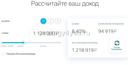 Продолжительность хранения средств составляет 1 год. Не предусмотрена возможность снимать часть накоплений и вносить денежные средства на счет. При расторжении договора раньше срока стандартная ставка будет снижена. Начисленные проценты выплачиваются каждый месяц.
