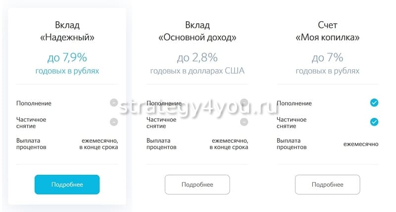 При отсутствии инвестиционного пакета выгодно открыть вклад «Надежный промо» или классический «Надежный». Варианты вкладов с возможностью свободного управления средствами подойдут для граждан, которым требуется снимать и пополнять сберегательные счета до окончания срока действия соглашения с банковской организацией.