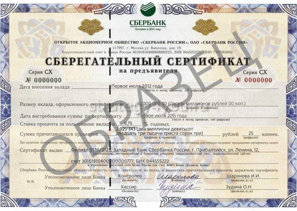 Погасить сертификат разрешается в филиалах либо региональных отделениях банковской организации-эмитента. Это отличает вид ценной бумаги от срочных вкладов.