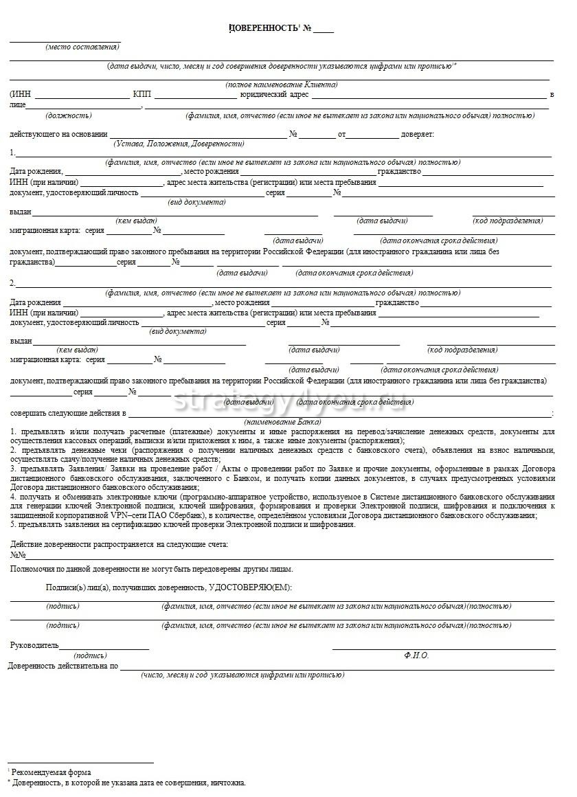 Образец доверенности