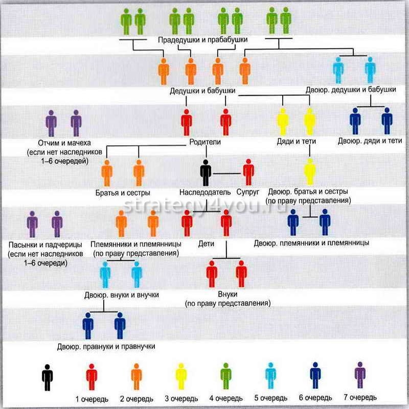 Если покойный родитель не оставил никаких распоряжений, права на капитал переходят в порядке очереди, оговоренной в законодательстве. Таких очередей, согласно Гражданскому кодексу, восемь. В число наследников с преимущественным правом входит супруг(а) и дети вкладчика.