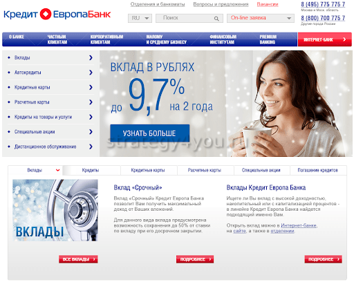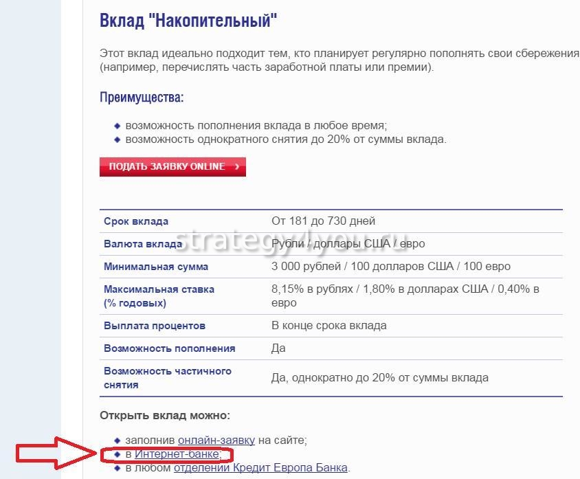 Клиентам «Еврокредит» банка, имеющим доступ к личному кабинету и мобильному приложению, можно открыть депозит онлайн. Потребуется заполнить сведения, выбрать программу, ввести данные карты или счета для перевода средств банку. После подтверждения в личном кабинете можно проверять рост дохода, контролировать финансовые операции.