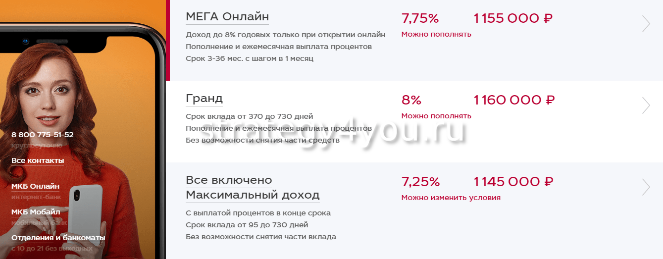 Вклады банка МКБ на сегодня — выгодные проценты и условия для физических лиц
