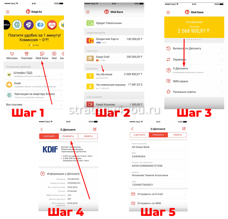 При пополнении депозита другим лицом через банкомат по ИНН нужно учитывать ограничения по сумме — не более 500 тыс. тенге в сутки. Ограничения отсутствуют, если средства вносить через кассу отделения Каспий Банка.