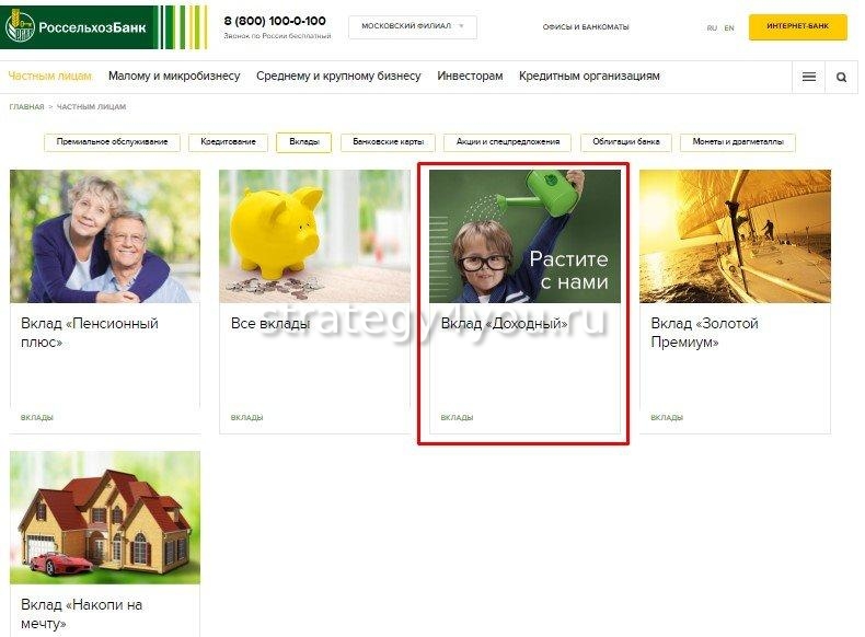 Вклад доходный рсхб