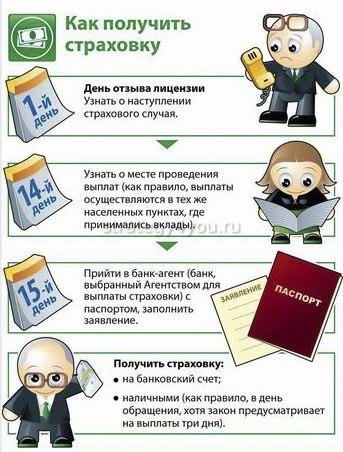 После объявления об отзыве лицензии страховые выплаты начинают производить через 14 дней. Это условие контролируется ФЗ “О страховании вкладов физических лиц в банках РФ”.