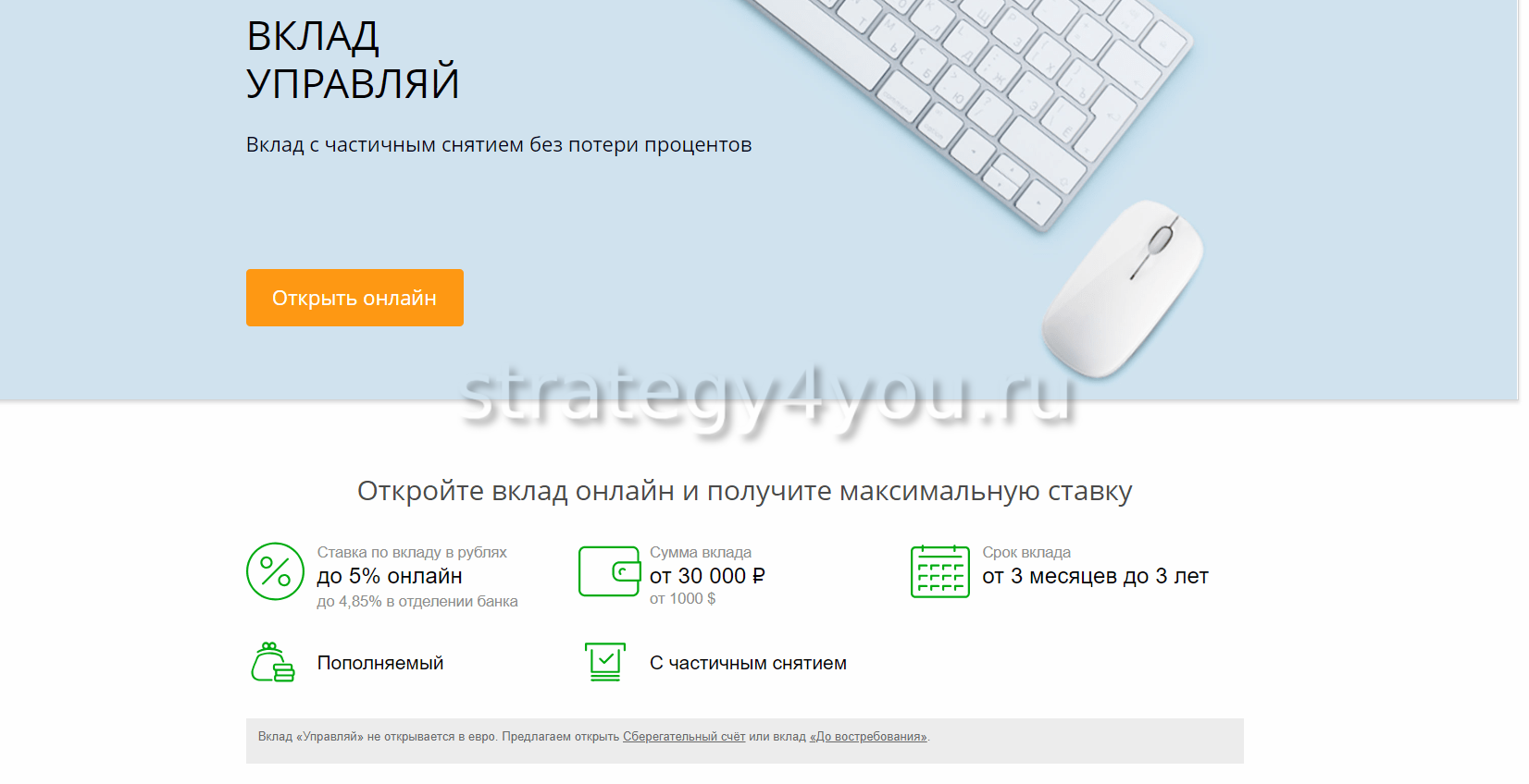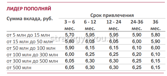- минимальный размер депозита — от 5000000 руб. или 150000 $;