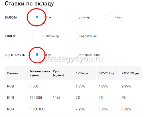 Размер неснимаемого остатка на счете составляет 30 тыс. руб. либо 500$. Предусматривается выплата процентов помесячно и капитализация. Специальные условия предлагаются пенсионерам и зарплатным клиентам. Хранить средства на счете можно до 1096 дней. Процентная ставка для зарплатных клиентов составляет до 4,25%, минимальная для размещения сумма — от 1000 руб.
