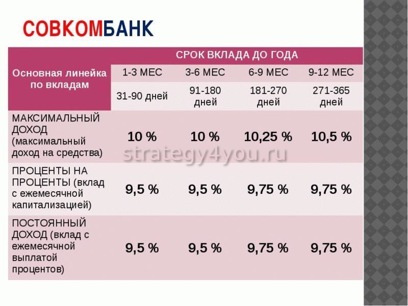 - Данные ставки действуют на депозиты в Совкомбанке, не превышающие размер 1,5 млн руб.