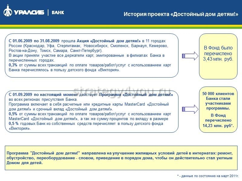 Необходимо учитывать особые условия депозита. До 0,5% годовых от сбережений с учетом довнесения денег будут переведены банковской организацией на поддержку программы детского фонда Виктория.