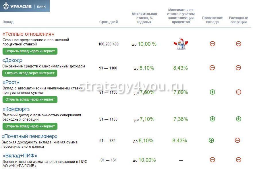 В банковской организации Уралсиб вклады представлены следующими программами: