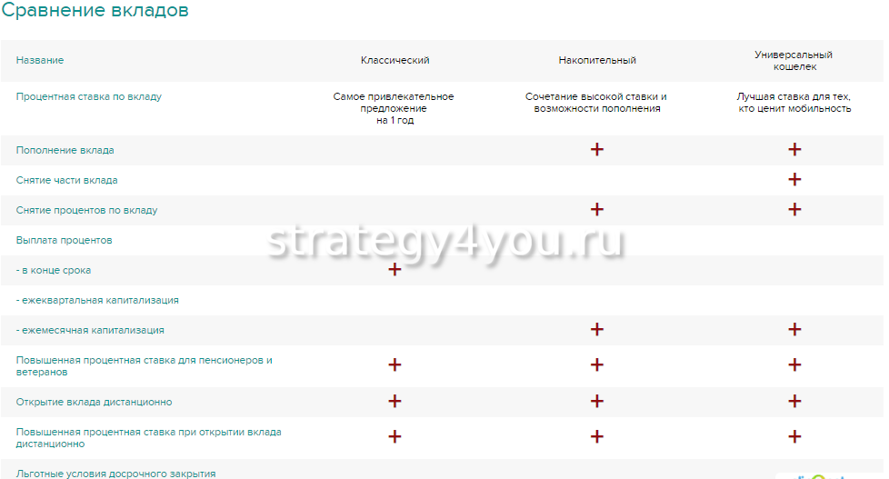 - возможность открытия депозита в режиме онлайн для клиентов банка;