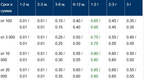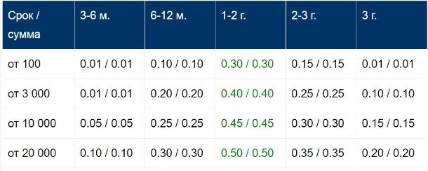 Ниже указаны процентные ставки для депозитов без капитализации и с опцией: