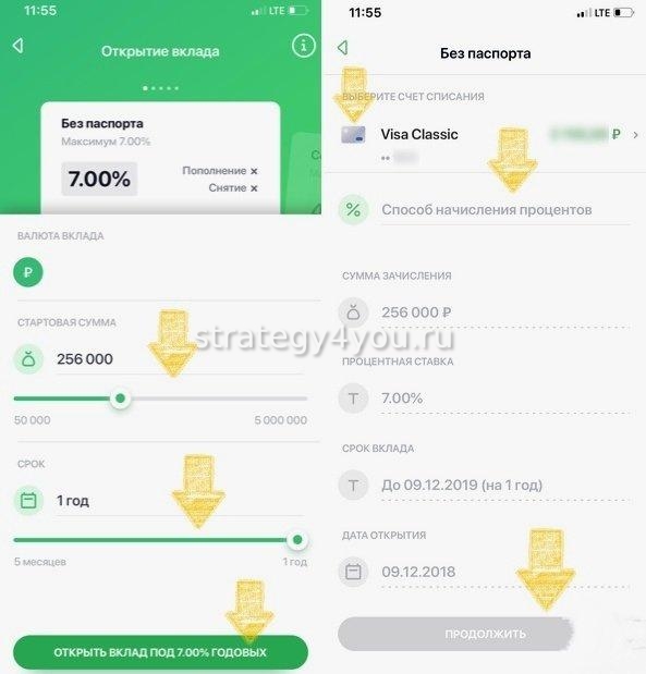 Оформление депозита с помощью мобильного приложения осуществляется поэтапно: