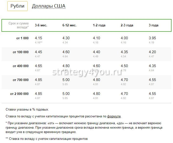 - Если договор заключается с учетом регулярного снятия накопленных процентов (без капитализации), ставка варьируется в пределах 3,5%-4,15%.