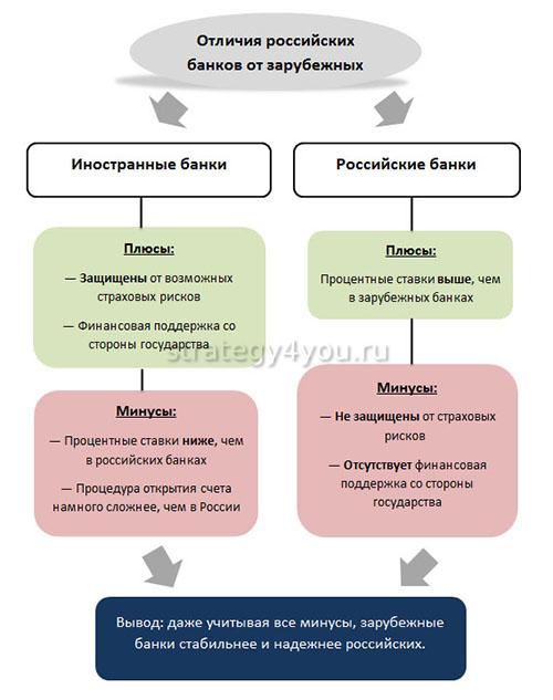 Для россиян, желающих открыть счет за рубежом, также важна финансовая репутация. Наличие хороших рекомендаций от российских финорганизаций, функционирование бизнеса в стране размещения вклада (лучшее преимущество), указание постоянного места работы – все это говорит в пользу клиента.