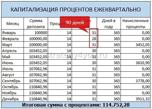 - ежеквартальная (доход причисляется 1 раз в квартал);