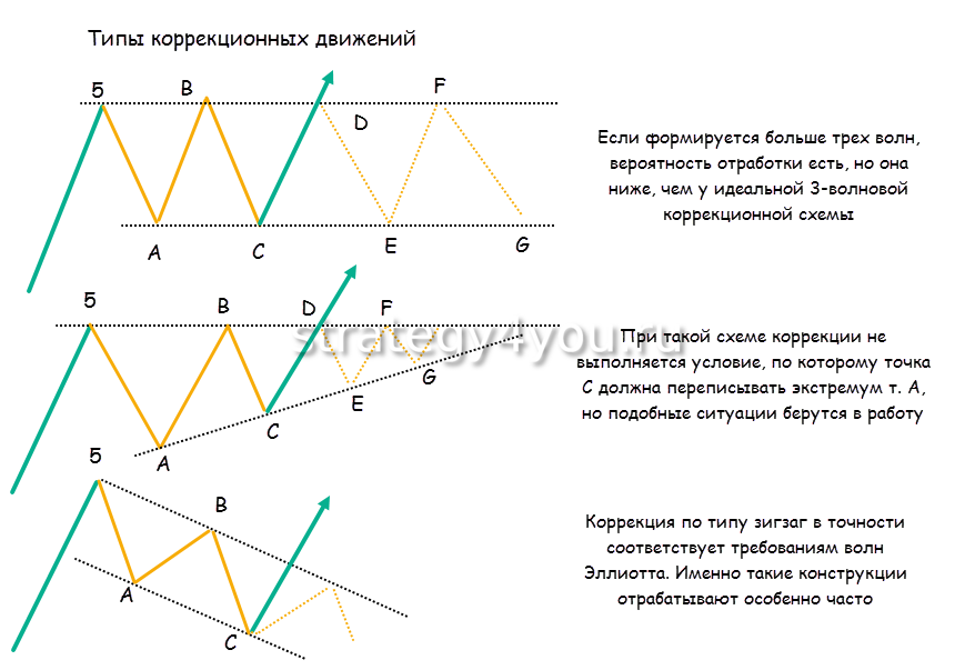 Самой востребованной причиной для торговли по волновому принципу Эллиотта считается наличие импульса от пункта разворота. Имеющиеся позиции лучше одобрять в каком-либо из 3 движущих подвидов, но стоит быть внимательнее, поскольку остается риск, что утвержденная структура будет элементом более крупной модели. При возникновении импульсной волны нужно ожидать первой коррекции: ее финал будет обозначением для вхождения в рынок.
