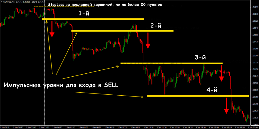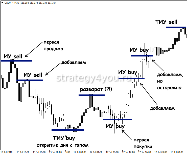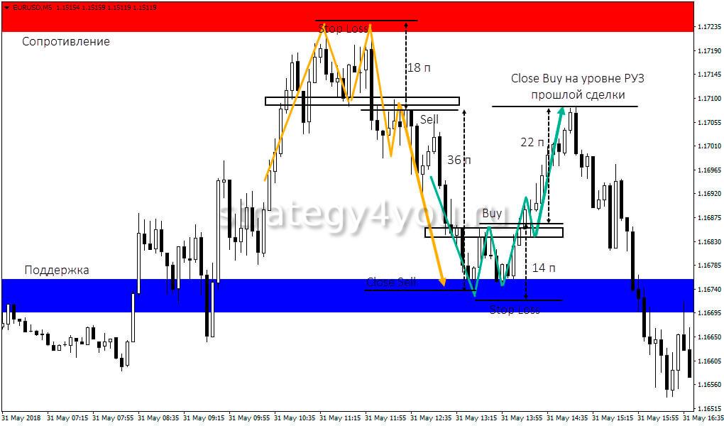 Эта стратегия представляет собой внутридневную систему, где открытые на бирже сделки нельзя переносить за следующий день.
