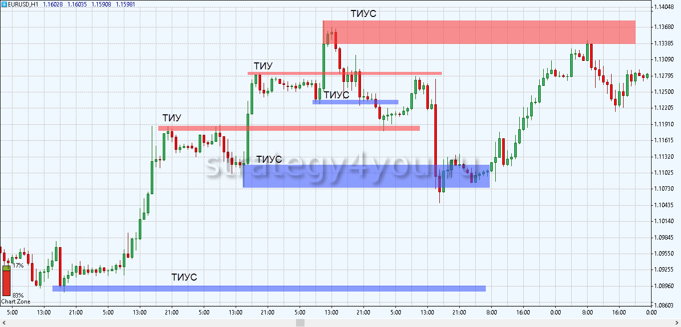 - ТИУС — является сильным уровнем, который устанавливают на экстремумах.