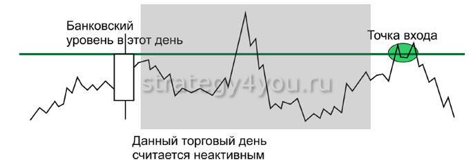 По ТС данный уровень строится на цене закрытия свечи, которая была создана в 00:00 по Гринвичу с учетом времени брокера и биржевого терминала.