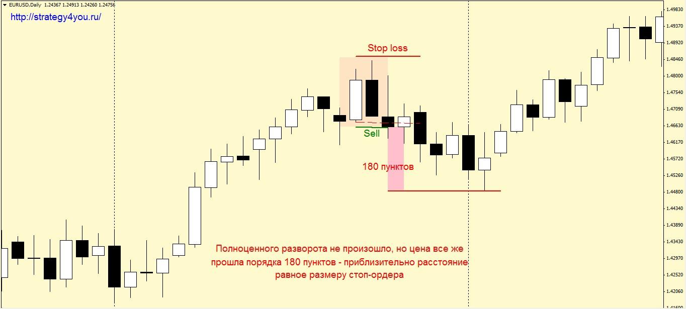 Если же вход был произведен в точке разворота тренда, то прибыль можно фиксировать по предыдущим максимумам или с помощью прочих графических инструментов и не только. В любом случае следует понимать, что появление данной модели в большинстве случаев предвещает довольно серьезное движение.