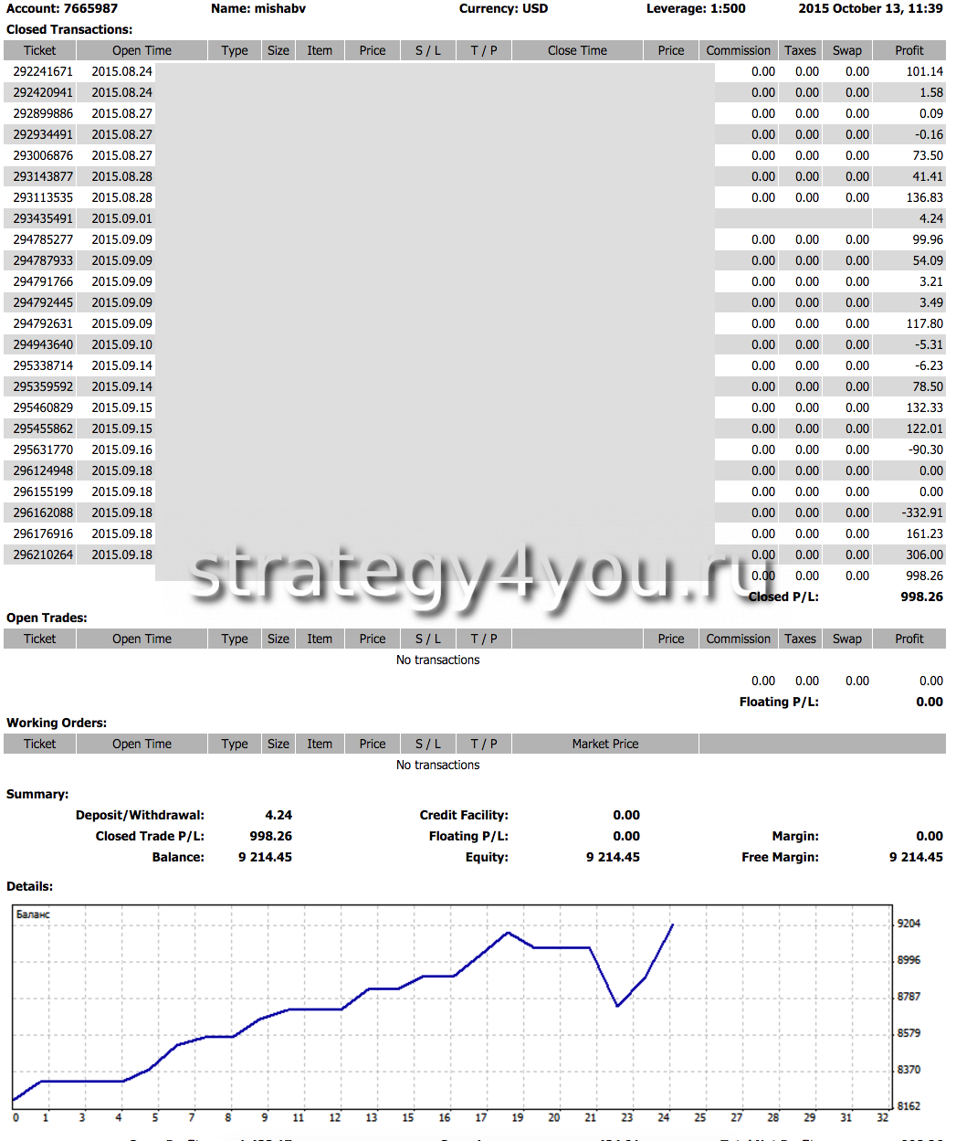 Тестирование проходил даже человек не знающий о форекс практически ничего и в итоге он все-равно получил прибыль (но делал все, как ему сказали в стратегии и четко соблюдал правила!!!), вот его небольшой отчет: