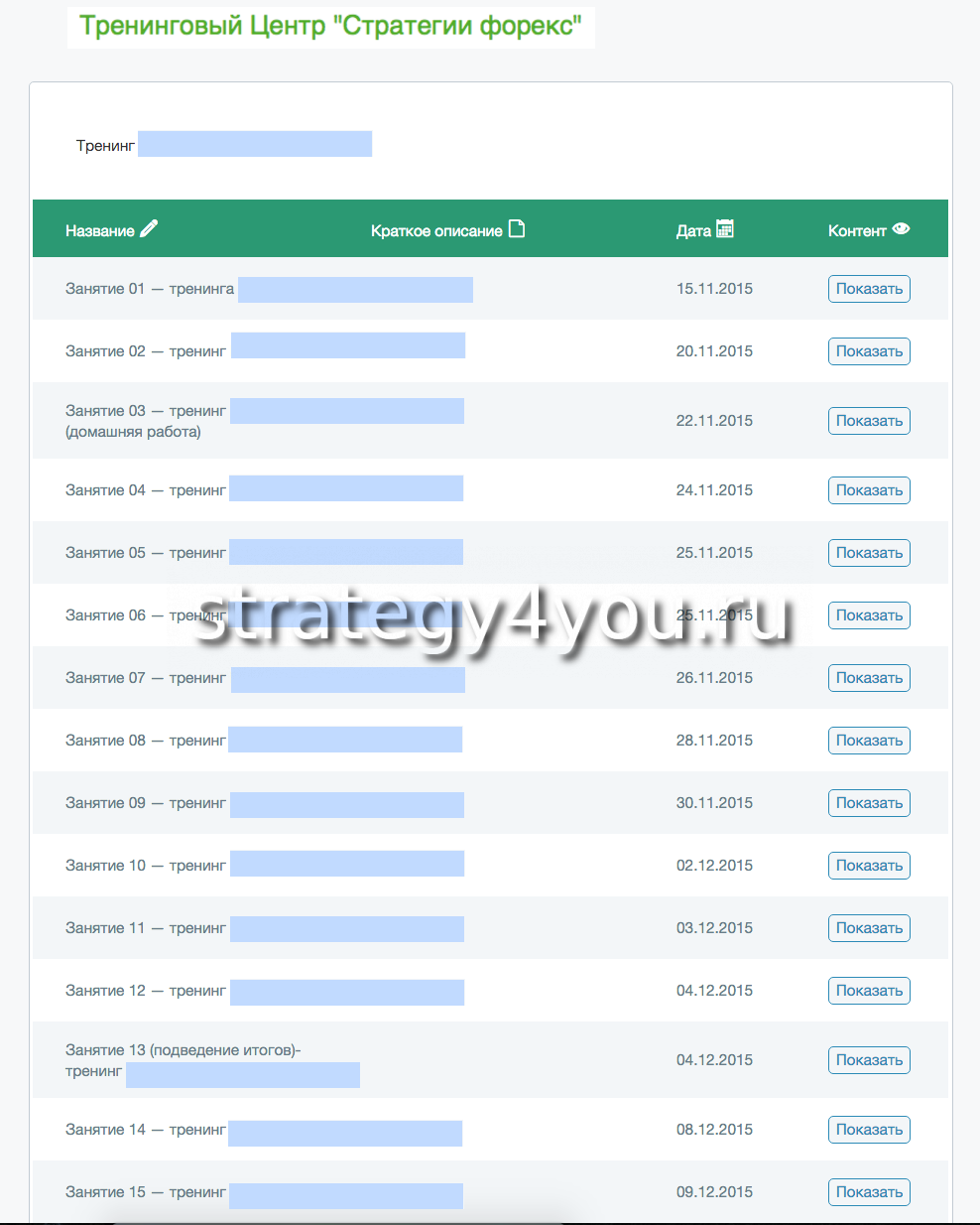 То есть вы получаете полноценный тренинг, но без участия в нем (и без гарантий). Ну и главное — тренинг все еще действующий (на 16 декабря 2015), потому у вас будет доступ к сигналам на день в закрытом разделе (скрины с возможными сделками), а на следующий день увидите все ошибки и разборы ситуаций.